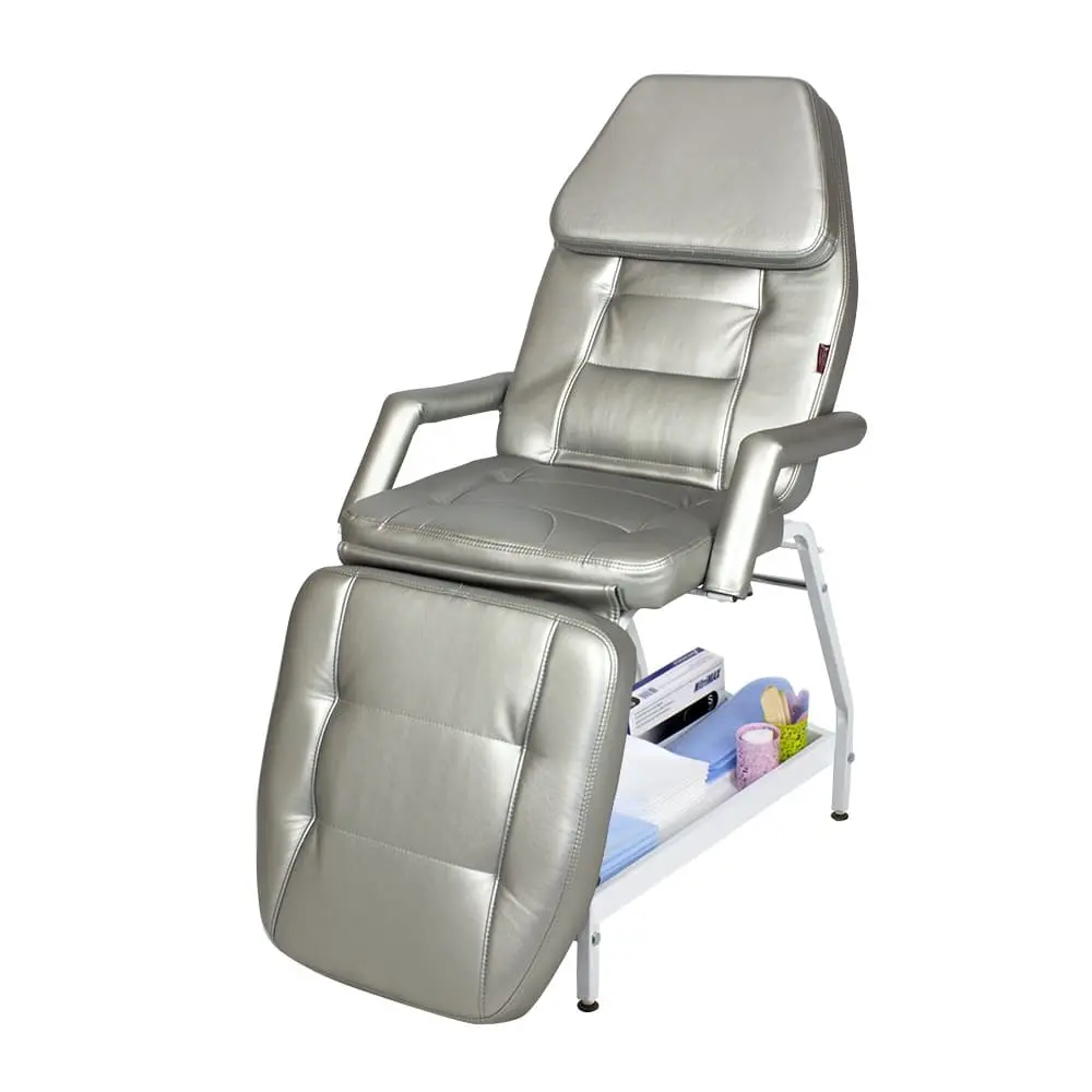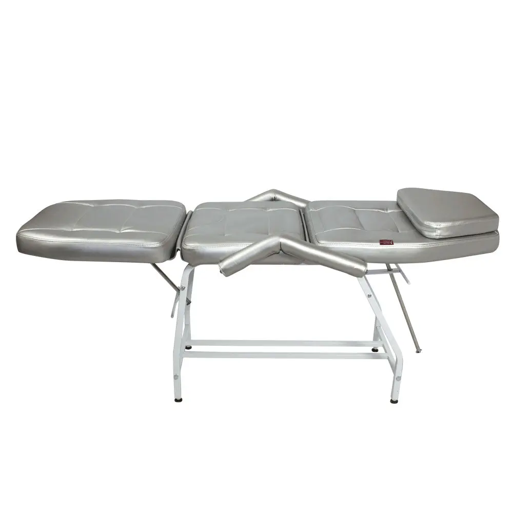 Профессиональная косметологическая кушетка Релакс Серебро оснащена надежным металлическим каркасом на ножках с подпятниками. Каркас очень устойчивый и рассчитан на достаточно большие нагрузки. При разработке данной модели кушетки наша компания особое внимание уделяет качеству мягких элементов, так как именно они обеспечивают Вашим клиентам необходимое удобство. Для их изготовления применяется плотный износостойкий поролон и современный обивочный материал – экокожа. Такая обивка долговечна, устойчива к воздействию влаги и дезинфекциям, легко очищается.
