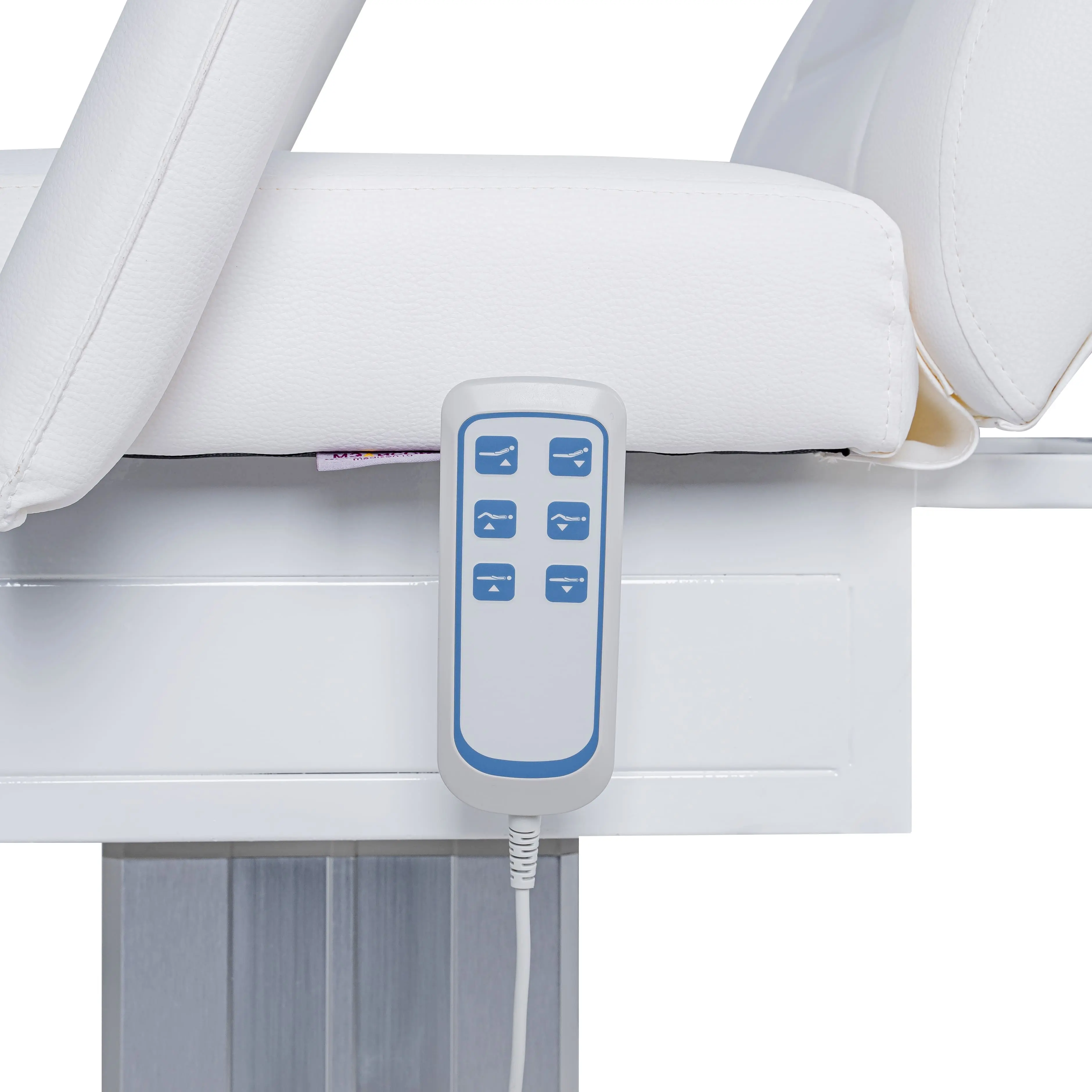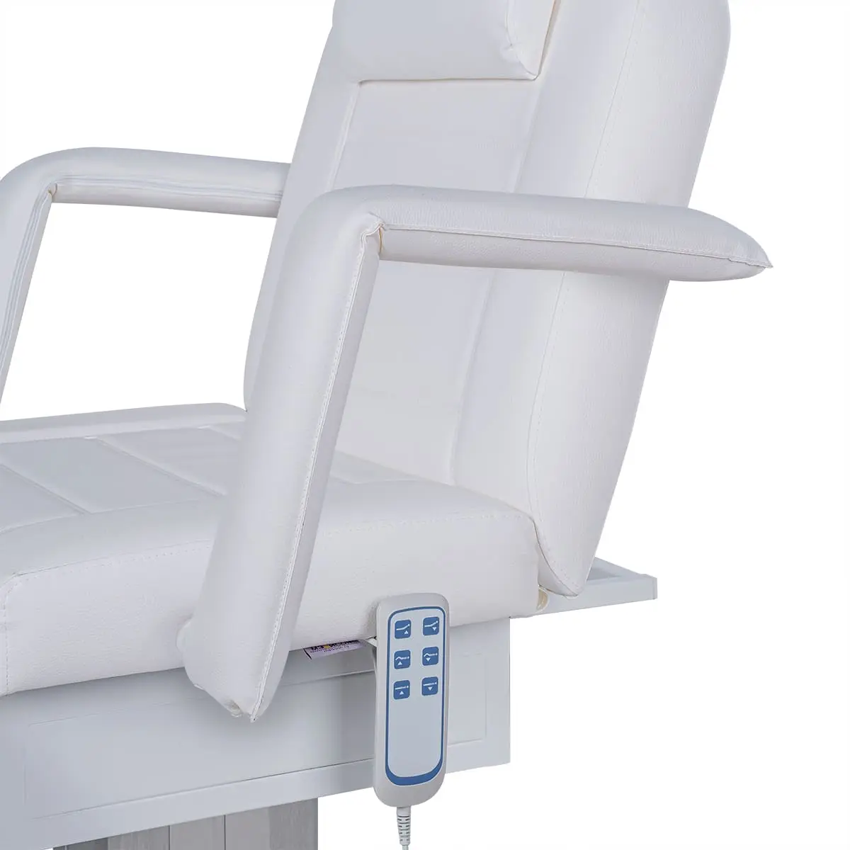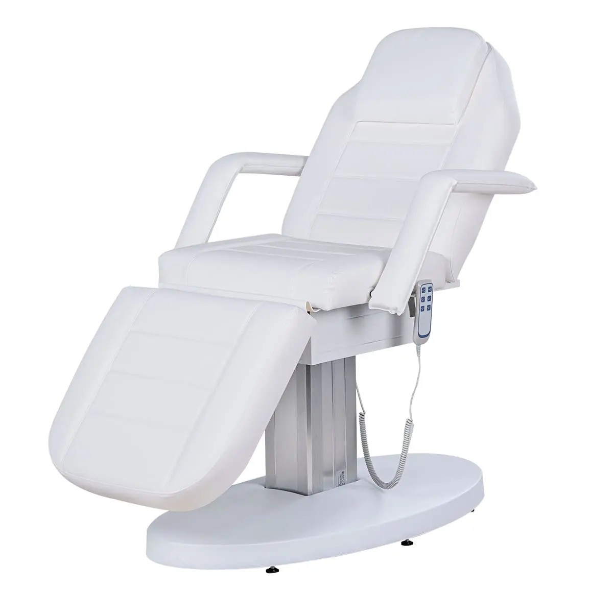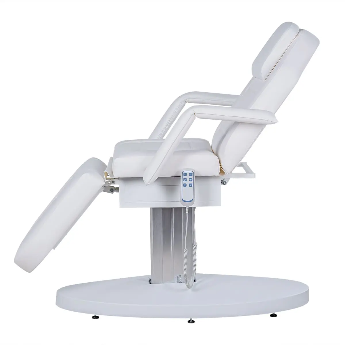 Кресло косметологическое Элегия-03 на колонне (Элегия-2) комплектуется тремя моторами электропривода, которые позволяют быстро и с комфортом для клиента менять положение мягких элементов. Пользуясь регулировками, мастер может трансформировать кресло в горизонтальное положение и использовать его в качестве косметологической или массажной кушетки. Все механические детали аккуратно спрятаны в стильной серебристой колонне. Подлокотники и подушка снимаются. Управление электроприводом осуществляется при помощи удобного пульта, который крепится к каркасу.