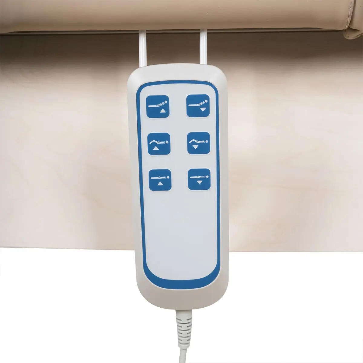 Комплектация: кушетка, подлокотники, съемная подушка, элементы каркаса и основания, электропривод с тремя электромоторами и дистанционным пультом управления.