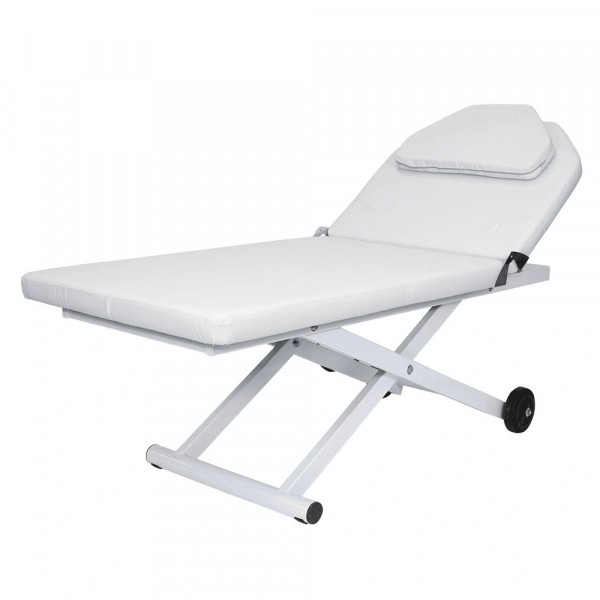 Профессиональная косметологическая кушетка МД-3329 Белый позволит массажисту выполнять различные виды массажа с комфортом для клиентов. Она произведена из качественных материалов с учетом современных требований к массажному оснащению. Модель МД-3329 имеет прочный металлический каркас, который с одной стороны установлен на подпятниках, а с другой – на колесах. Такая конструкция обеспечивает устойчивость кушетки, а также позволяет легко перемещать и поворачивать ее при необходимости. Кушетка комплектуется электроприводом с одним мотором, при помощи которого мастер сможет без дополнительных усилий регулировать высоту, не прерывая рабочий процесс.