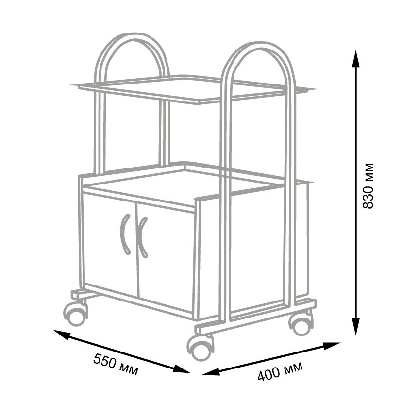 Комплектация: каркас на колесах, полочка, встроенный шкафчик закрытого типа с дверками.