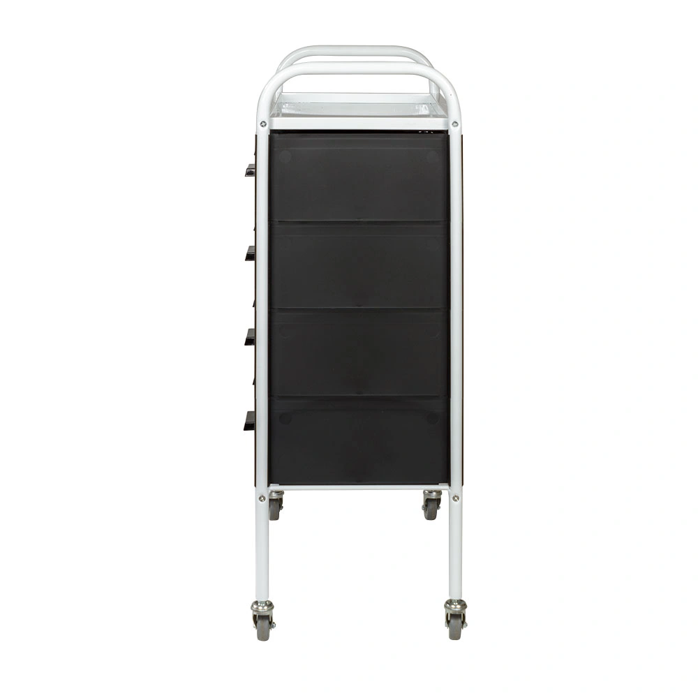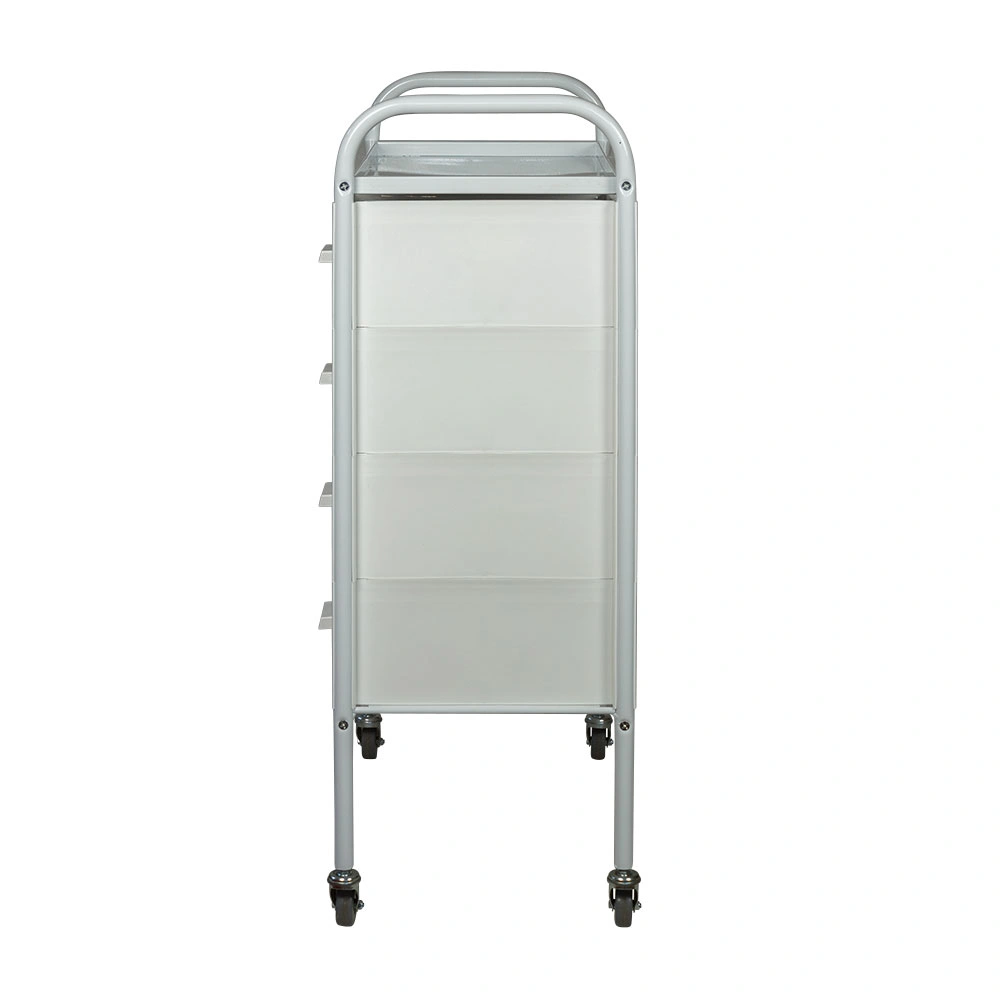 Гарантией длительного срока службы тумбы являются качественные материалы, используемые для создания косметологического оборудования. Каркас выполнен из прочной стали. Полка изготовлена из цельного листа металла. Металлические элементы защищены от влаги, коррозии и химических средств. Для изготовления ящиков использован качественный пластик, устойчивый к механическим воздействиям. Колеса из резины не повредят напольное покрытие.