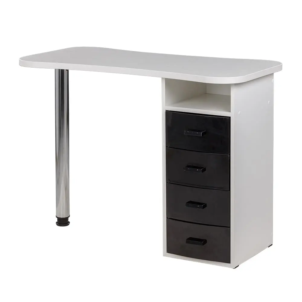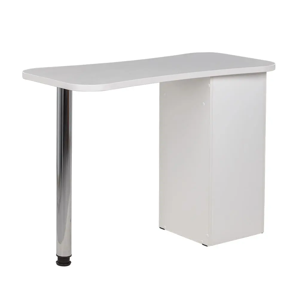 Столешница имеет оптимальные размеры и продуманную изогнутую форму для комфортной работы с клиентом. Практичная тумба поможет разгрузить рабочую поверхность от инструментов, которые не используются в процедуре.