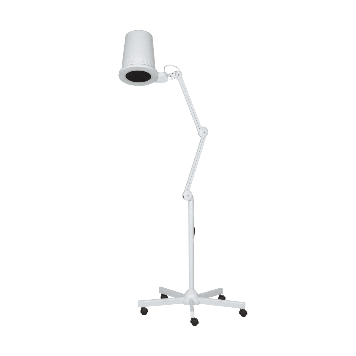 Стойка имеет металлическую конструкцию на колесиках и подходит для оснащения медицинских и косметологических кабинетов, а также ювелирных и часовых мастерских. Напольная стойка для вытяжки 4blanc оснащена крестовиной из 5 лучей, что обеспечивает высокую устойчивость и безопасность в работе, а также фиксатором на колесах, что позволяет закрепить штатив напольный в одном положении без опрокидывания.