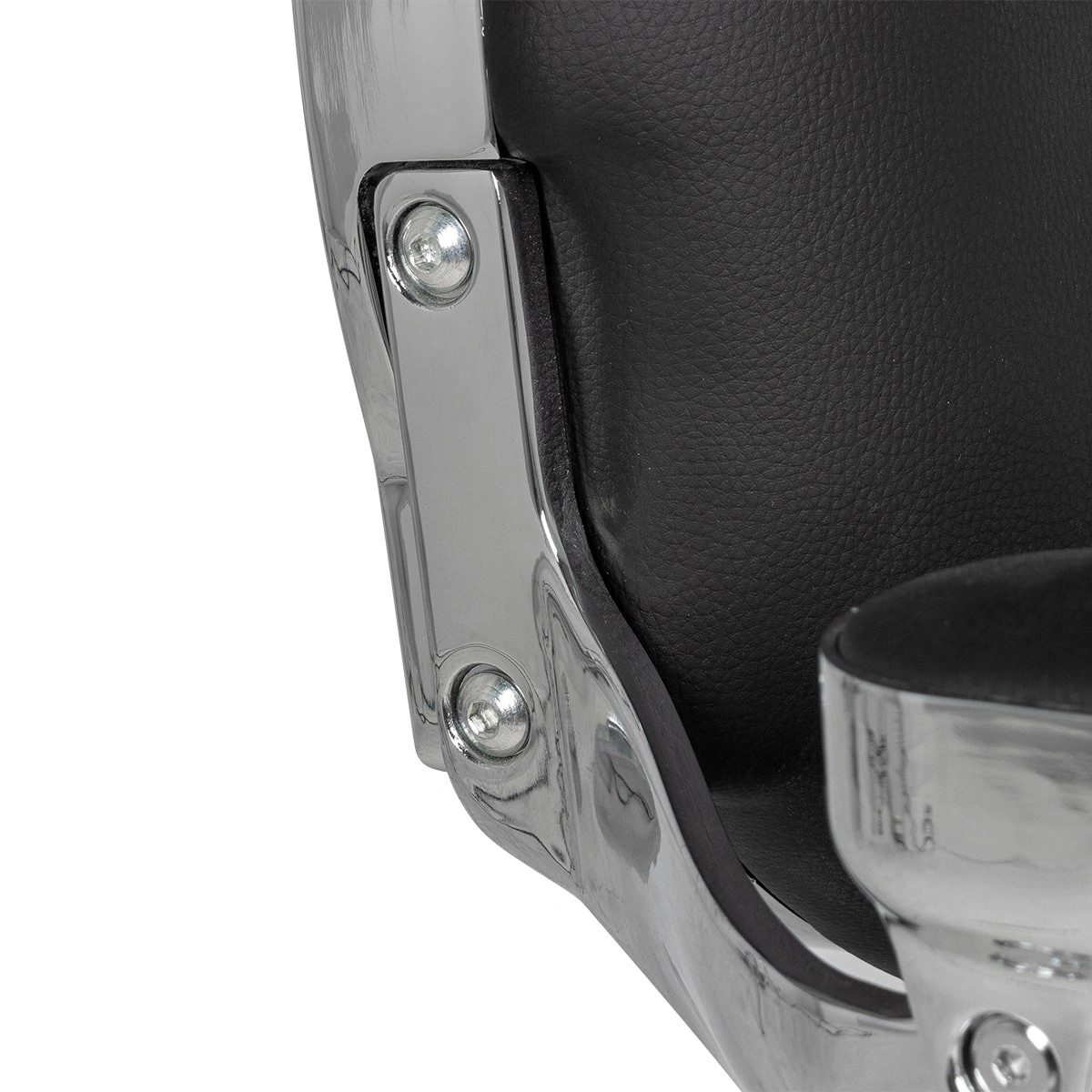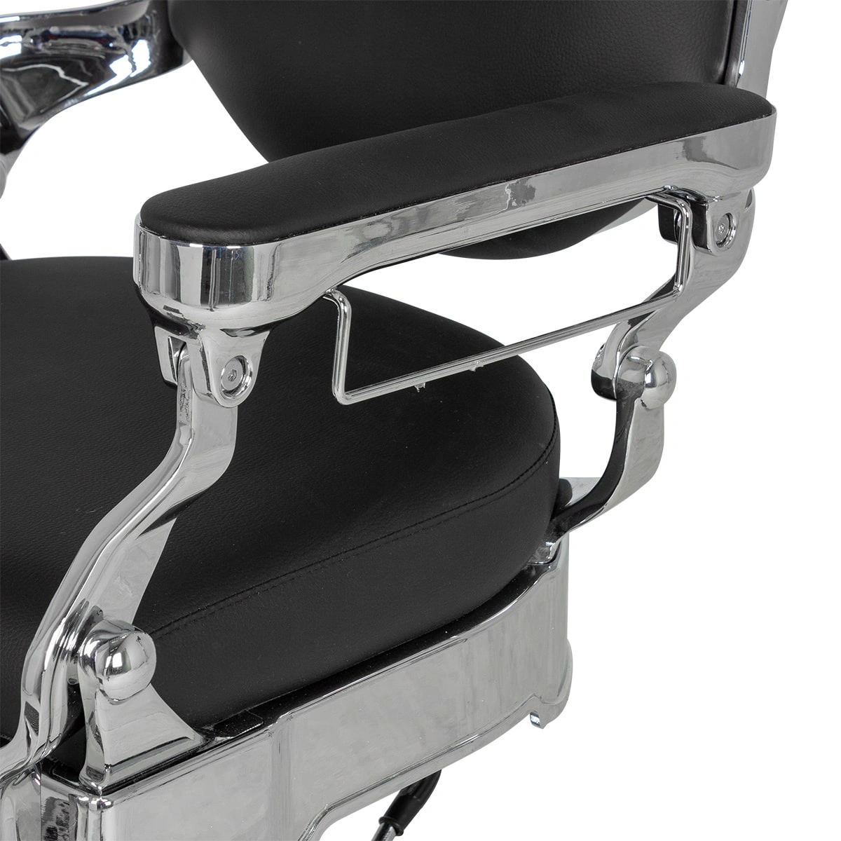 Удобное сидение оснащено широкими подлокотниками для комфорта посетителей. Для поддержания шеи и головы клиента в конструкции предусмотрен мягкий подголовник. Практичная подножка не допустит усталости ног клиентов.