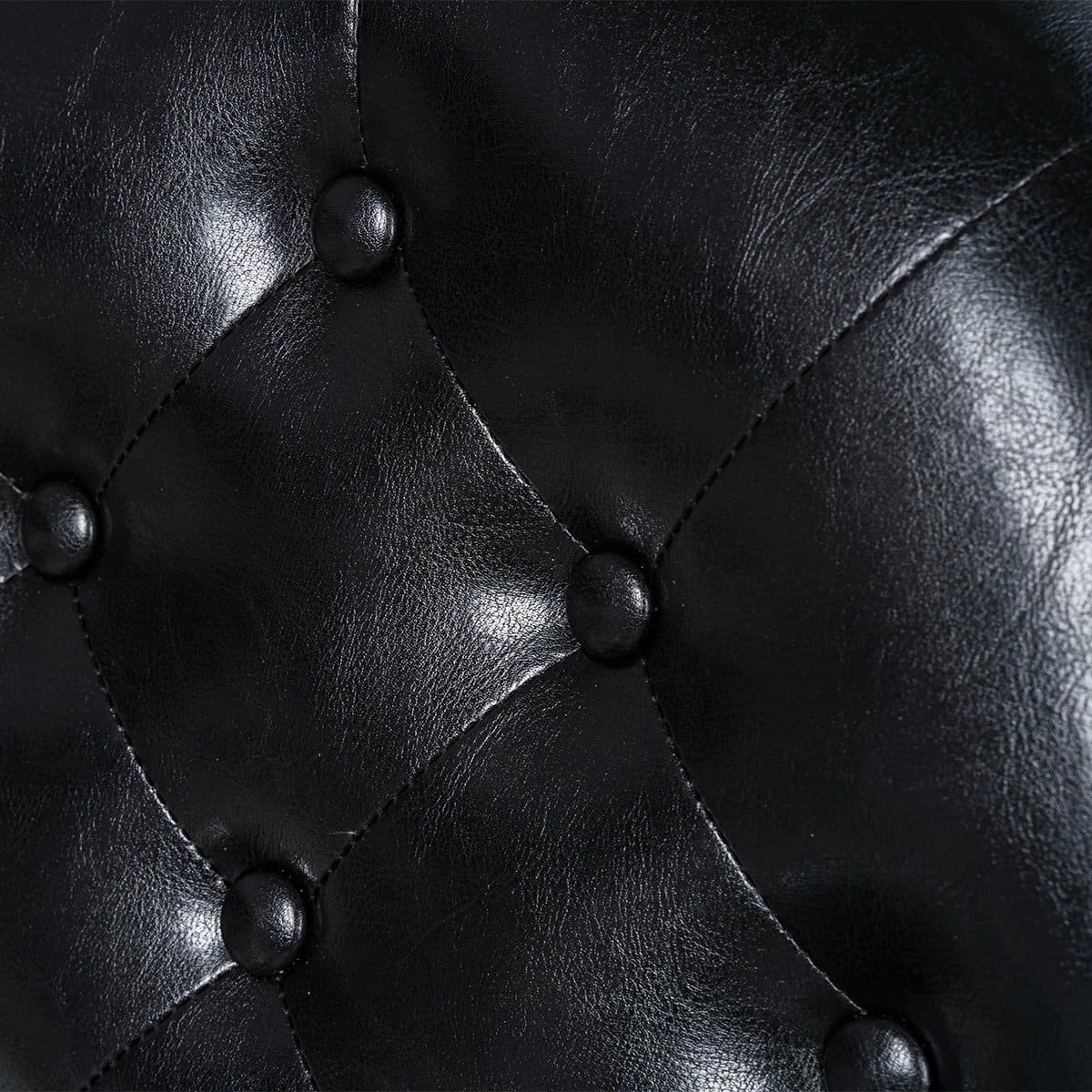 Металлическая круглая основа с хромированным покрытием отличается прочностью и устойчивостью. Каркас изготовлен из качественной стали и многослойной фанеры. В качестве наполнителя использован эластичный поролон. Обивка выполнена из экокожи.