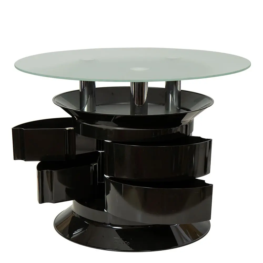В комплектации столика предусмотрены шесть вместительных ящиков. Пространство между столешницей и ящичками также можно использовать. Столик можно легко перемещать благодаря встроенным колесам.