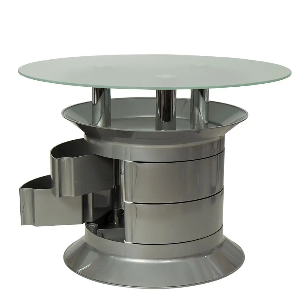 Стильный и практичный журнальный столик GiroCo Benito gray гармонично дополнит интерьер салона красоты. Оборудование можно использовать для хранения журналов в тематике салона, или использовать как эффектный элемент декора. Под столешницей есть вместительные ящики и полка. Мобильность столика обеспечена вращающимися колесами.