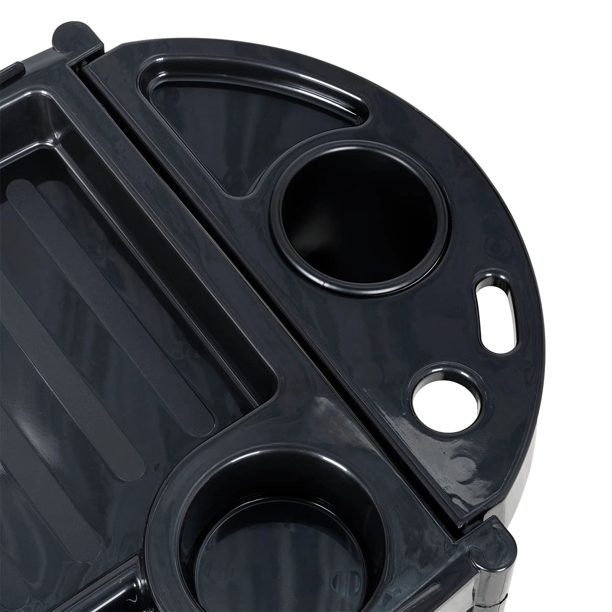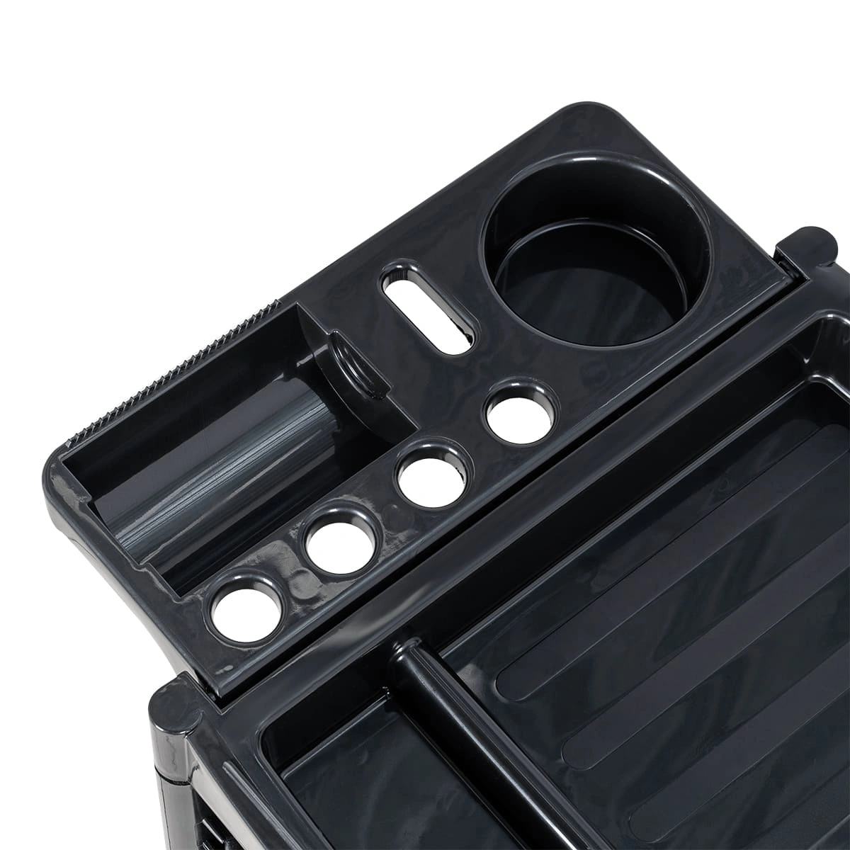 У парикмахерской тележки максимальная вместительность и универсальный дизайн, просторная верхняя крышка с отверстиями для брашингов и ёмкостей, 4 выдвижных ящика и нижняя полочка для инструментов и баночек красоты, это позволит мастеру организовать рабочее пространство и повысить эффективность работы.