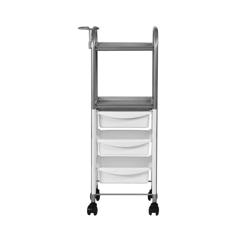 Каркас, полочки и фенодержатель изготовлены из прочного металла. Для защиты от коррозии и влаги на поверхность нанесен слой краски. Для создания боковин и ящиков использован качественный пластик устойчивый к влиянию очищающих средств. Пластиковые колеса предотвратят скольжение конструкции.