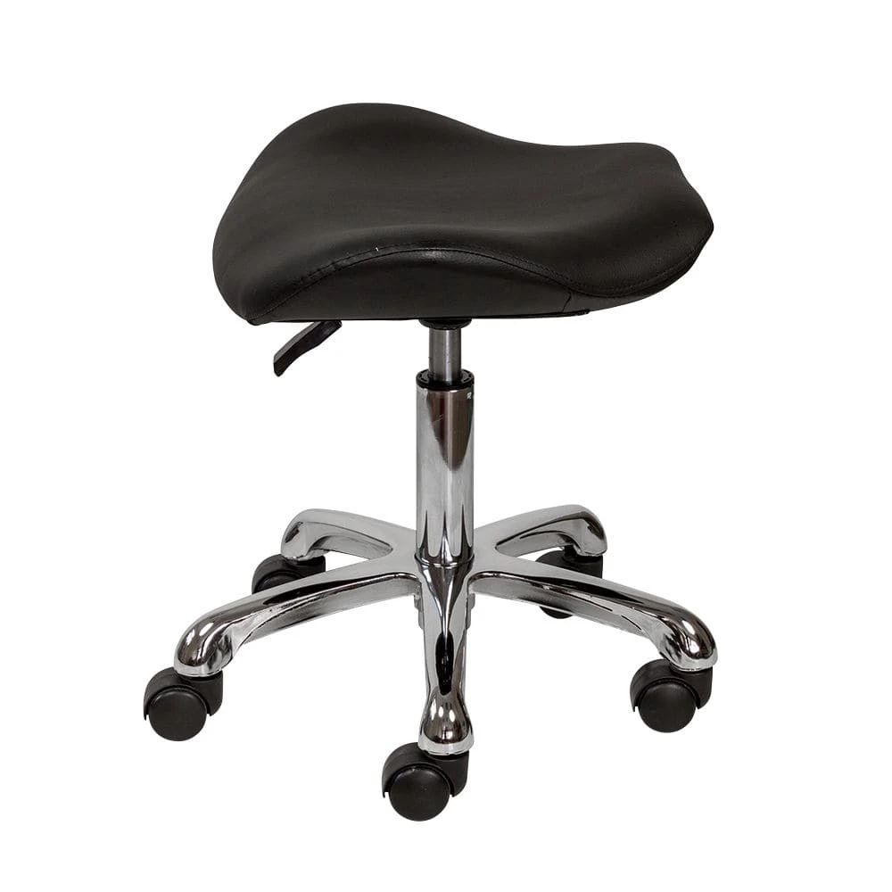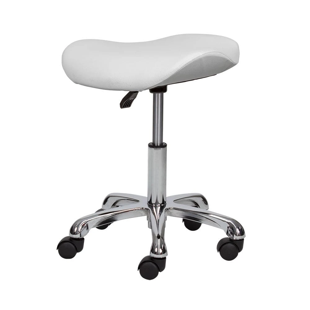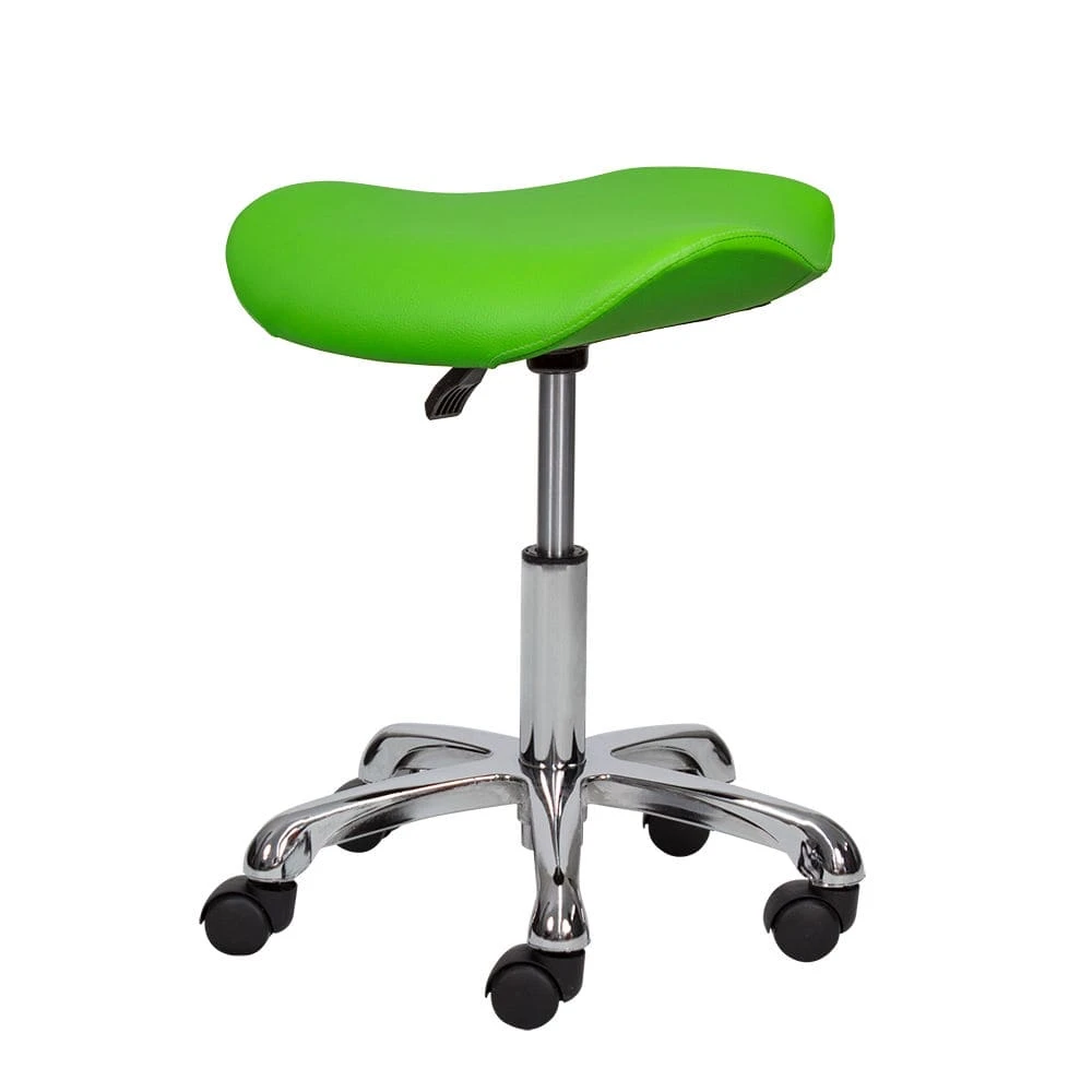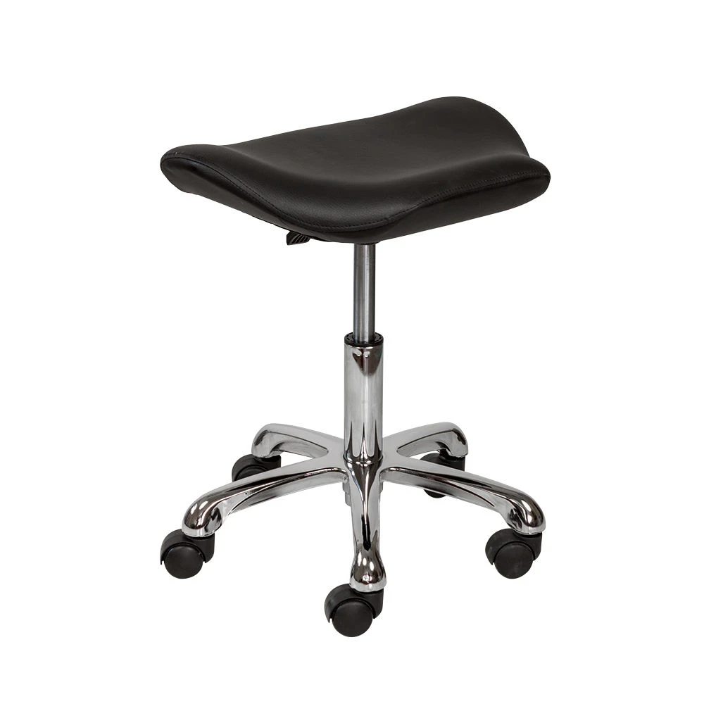 Сидение в форме седла обеспечивает правильное расположение позвоночника, что предотвратит боли в спине при длительной работе сидя. Для быстрого перемещения по рабочей площади стул оснащен вращающимися колесиками. Каждый специалист сможет подобрать для себя высоту сидения за счет пневматического механизма.