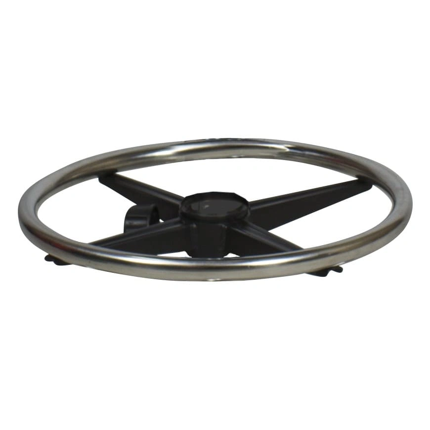 Основание: пятилучье из прочного хромированного металла, установлено на легко вращающиеся пластиковые колеса.