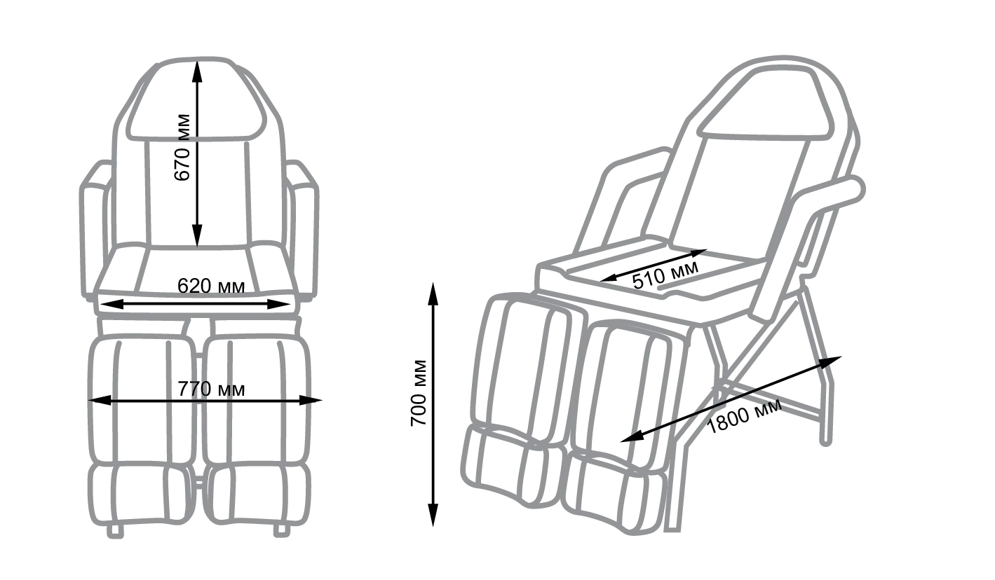 В магазине МЭДИСОН купить педикюрное кресло МД-3562 можно с такими размерами: