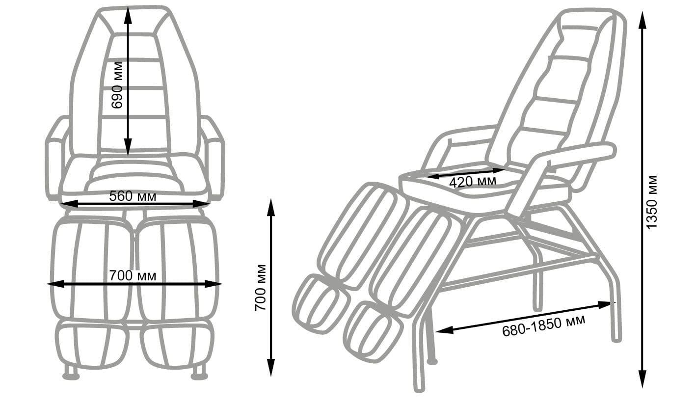 Регулировка наклона спинки и подушек под ноги: с помощью механики в полностью горизонтальное положение.