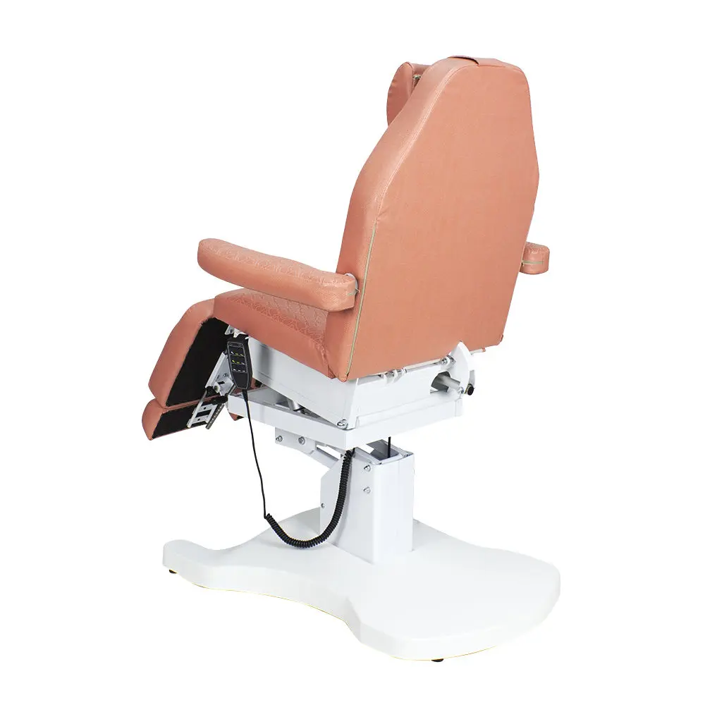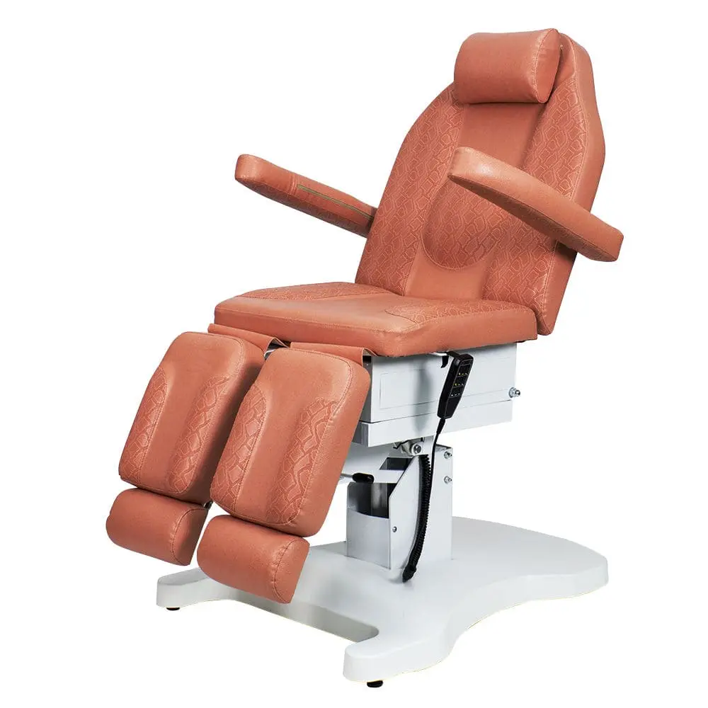 Функционал кресла Оникс-03 дополняет электропривод с тремя моторами для регулирования высоты, положения спинки и наклона сиденья. Высота ножек регулируется механически до горизонтального уровня. Мягкие элементы под стопы легким движением выдвигаются на необходимую длину. Наличие различных регулировок позволяет мастеру подобрать наиболее удобное положение кресла.