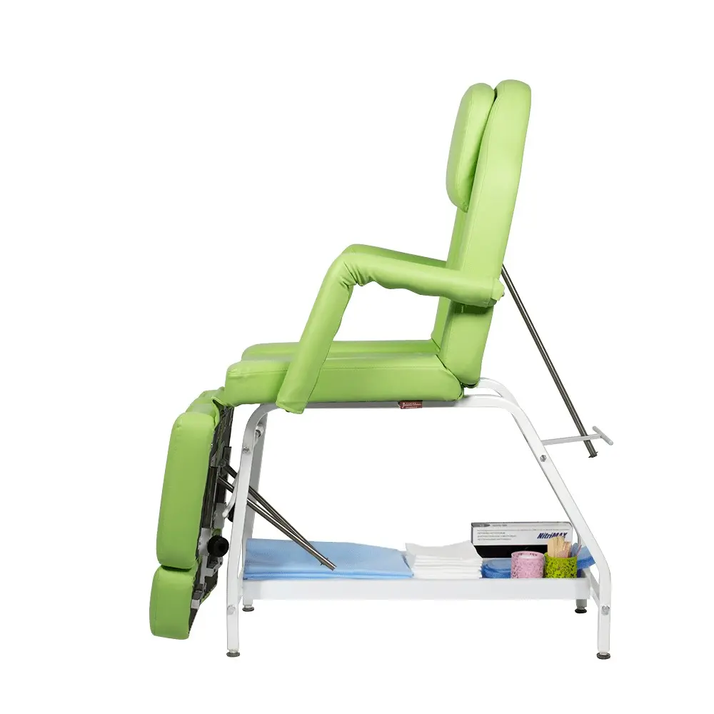 Устанавливается поддон под сиденьем кресла между ножками. Для изготовления комплектующего использован ударопрочный пластик. Материал устойчив к небольшим механическим повреждения, хорошо переносит дезинфицирующие и моющие средства, не деформируется при случайном попадании косметических препаратов.