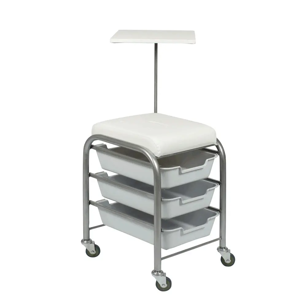 Купить педикюрно-маникюрную стойку очень выгодно, так как Вы получаете универсальный предмет мебели, включающий в себя удобный стул для мастера и вместительную тележку. Преимущества данной модели: