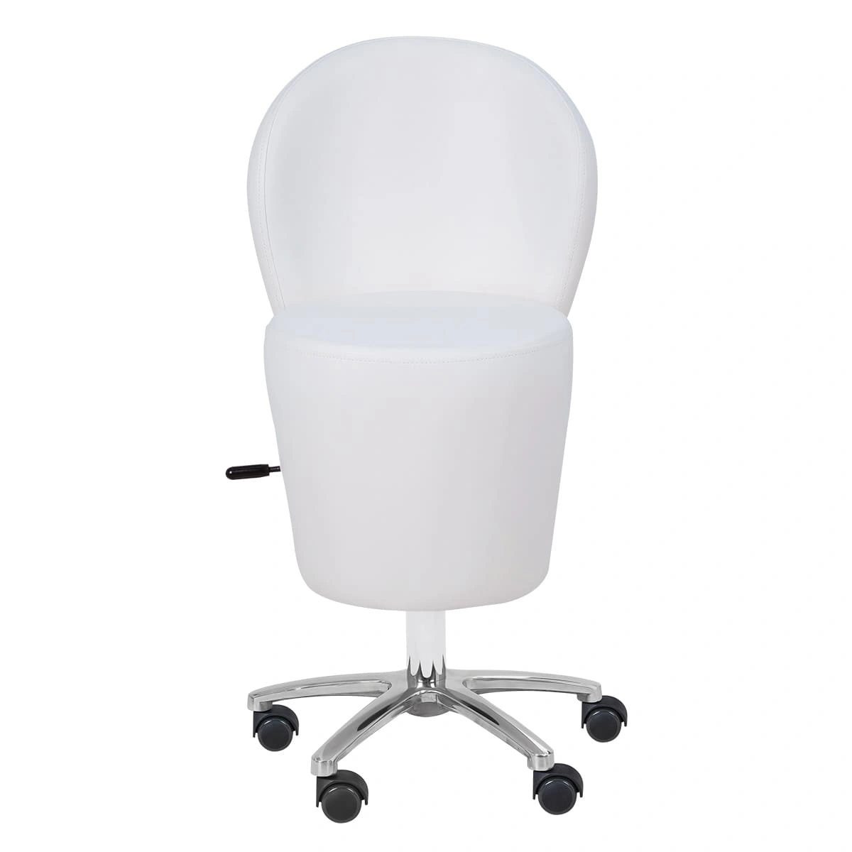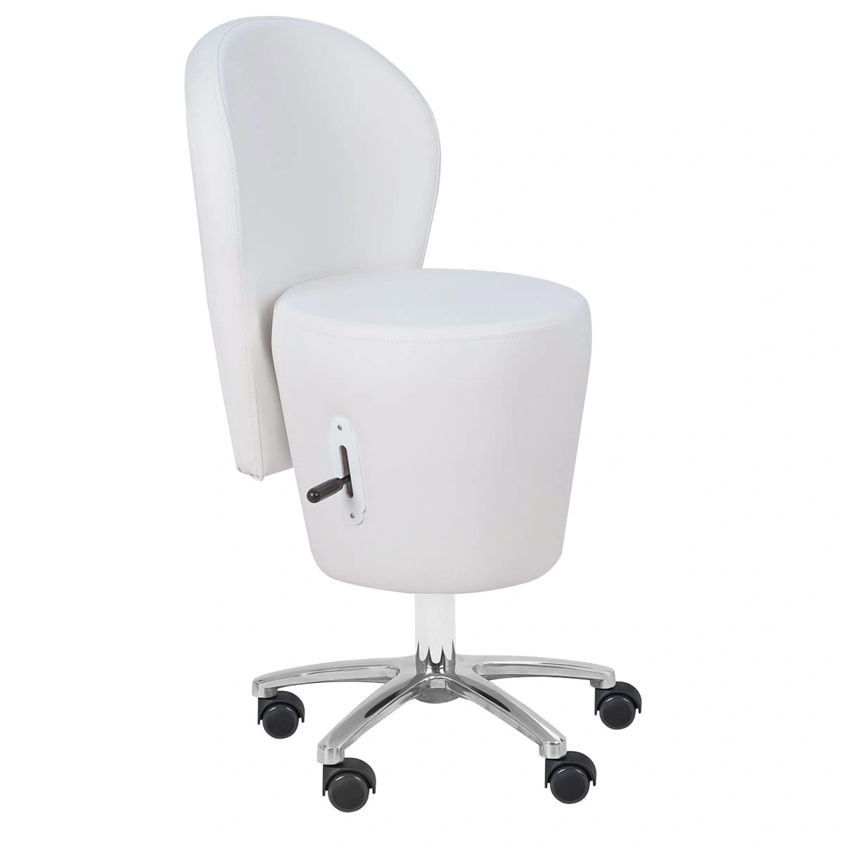 Стул мастера имеет устойчивое хромированное пятилучье с манёвренными колёсам, он без усилий перемещается и не занимает много пространства в салоне. Удобная регулировка высоты на боковой поверхности – можно поднимать/опускать стул, не вставая с него. Идеально подойдёт для косметологических и спа-салонов.