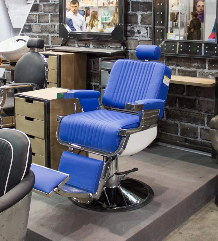 Вторая часть стенда демонстрировала яркие новинки оборудования для бербера, кресла для педикюра и косметологии.